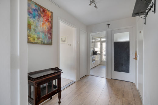 Via de gezamenlijke entree bereik je het appartement op de vierde woonlaag. Je komt binnen in een ruime hal met meerdere inbouwkasten, praktisch voor jassen, schoenen en extra bergruimte. Vanuit de hal zijn alle vertrekken van de woning toegankelijk.