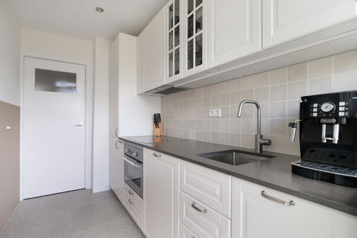 De vernieuwde keuken (begin 2025) ligt aan de achterzijde en is voorzien van moderne apparatuur en voldoende kastruimte. Vanuit de keuken heb je toegang tot het balkon, waar je heerlijk kunt genieten van de rust en het uitzicht over het groen.
