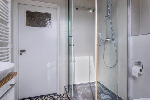 Hier vind je twee ruime slaapkamers, waarvan één met eigen airconditioning en toegang tot het royale dakterras. De badkamer is netjes afgewerkt en beschikt over een douche en toilet. Daarnaast is er een multifunctionele kamer die momenteel in gebruik is als wasruimte, maar die eenvoudig te transformeren is tot extra slaapkamer of thuiskantoor.