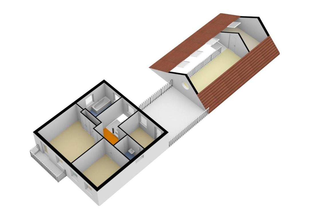 volop licht, maar geen inkijk van buiten. Op de eerste verdieping zijn drie slaapkamers en