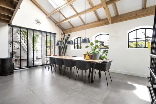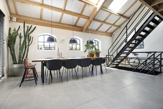 haard is gesitueerd, is één open ruimte geworden. Dankzij de houten shutters heb je hier