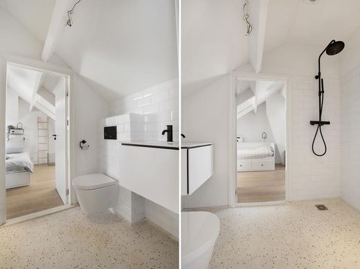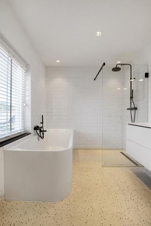 badkamer. Door het hoofdhuis met een deels glazen gang te verbinden met de oude