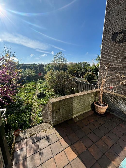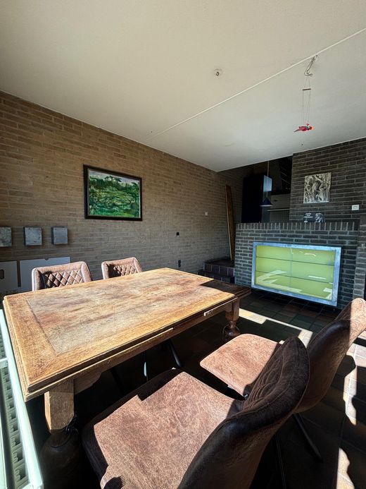 Eetkeuken met serre en terras. Zonnige tuin op het zuidwesten met een achterom, fraai uitzicht.