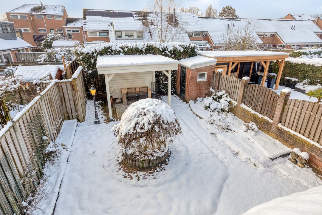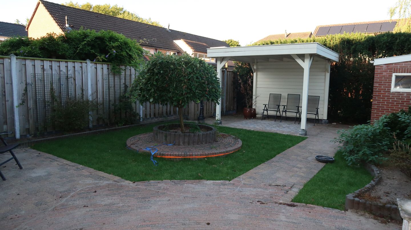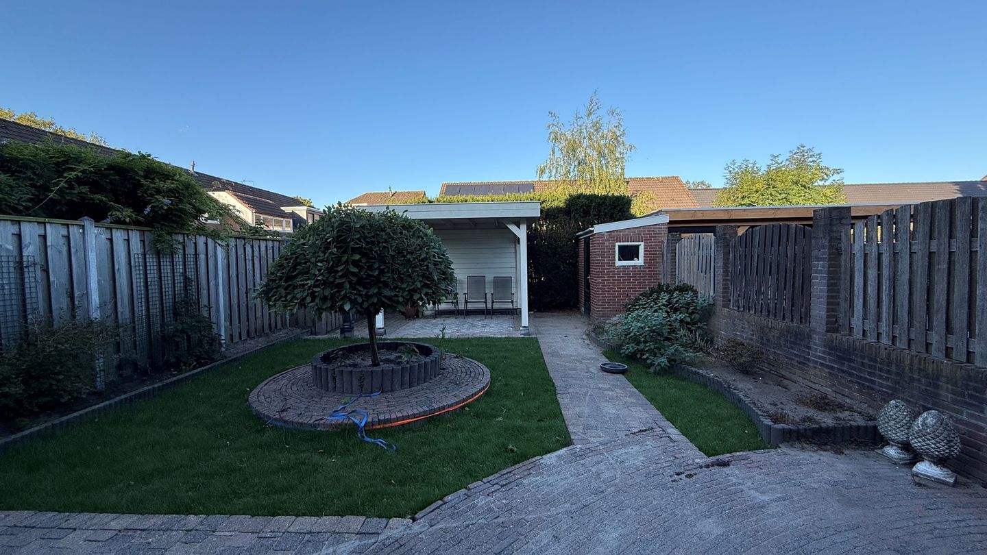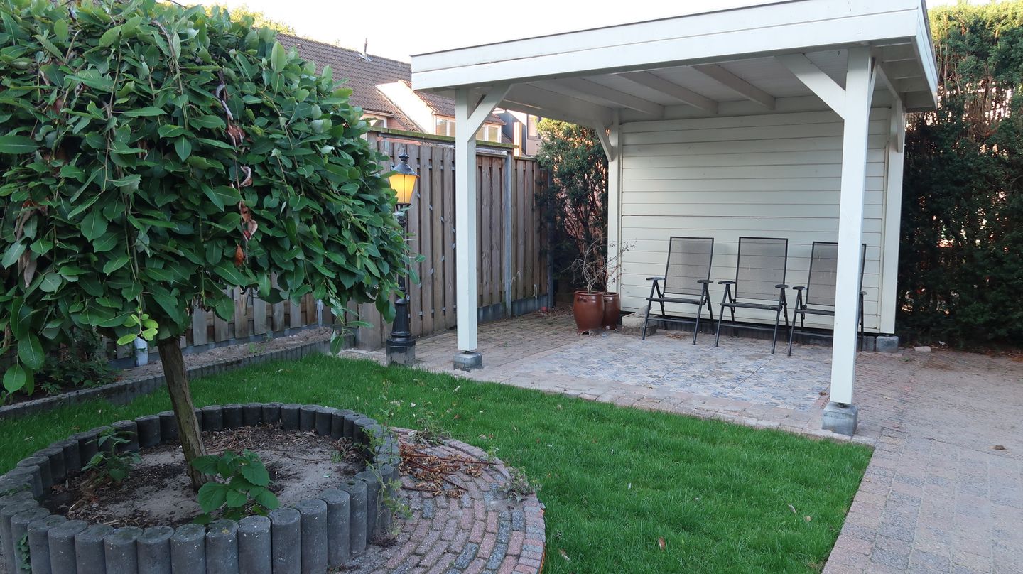 Wat direct opvalt aan deze tussenwoning is het ruime perceel van liefst 221 m². Zet gerust de openslaande deuren open en laat het buitenleven naar binnen stromen. De achtertuin biedt volop mogelijkheden voor speelplezier, tuinfeesten of simpelweg ontspannen met een goed boek. Heb je groene vingers? Dan kun je hier je hart ophalen, want er is plek genoeg voor een eigen moestuin of bloeiende borders. En stel je voor: op zonnige dagen zit je lekker onder een overkapping met een drankje in de hand!